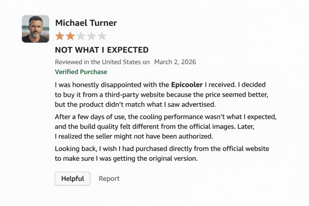 Some customers unknowingly purchased Epicooler from websites that are not authorized sellers. Although these platforms may appear reliable, they are not directly connected to the official supplier, which makes it difficult to confirm product authenticity, quality standards, or warranty eligibility.